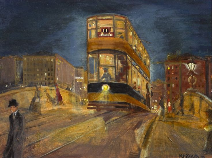 Kernoff’s family fled from Vitebsk, Russia, during the 1890s. The artist was born in London in 1900 and moved to Dublin in 1914. He spent most of his life without the recognition he so richly deserved, yet continued to paint the world around him. O’Connor captures the essence of the man thus: “He lived among and studied [Dublin’s] people, recording them in their infinite variety and was rivalled only by James Joyce in bequeathing a narrative of the city. As Joyce departed shortly after turn-of-the-century, Kernoff was left with the clear palette to record Dublin’s complexion as it changed with the century. By birth a Londoner, by family Russian, by religion Jewish, his paintings show iconic respect for those who impacted upon history in revolutionary times leavened with warm affection for the ordinary people who suffer the history”.